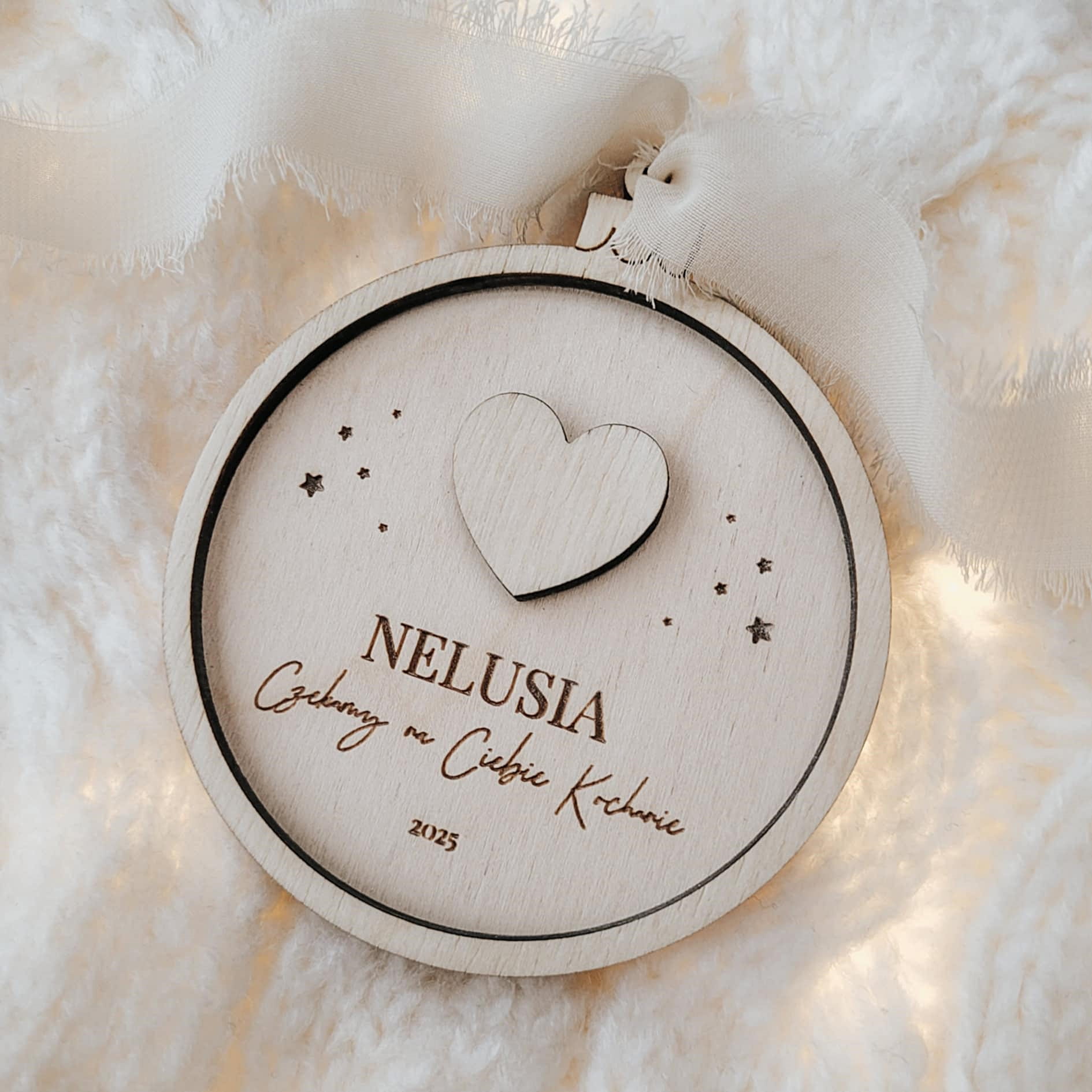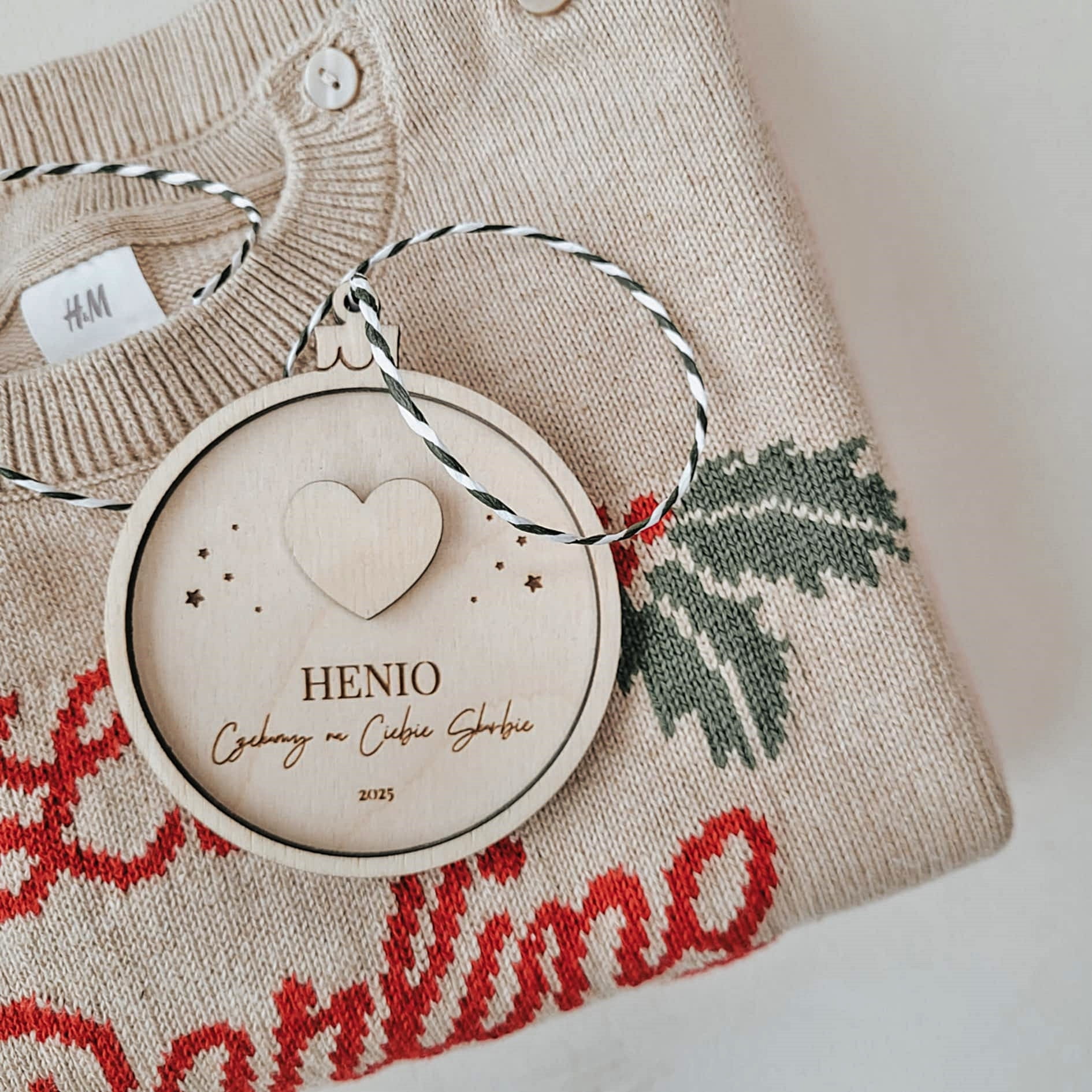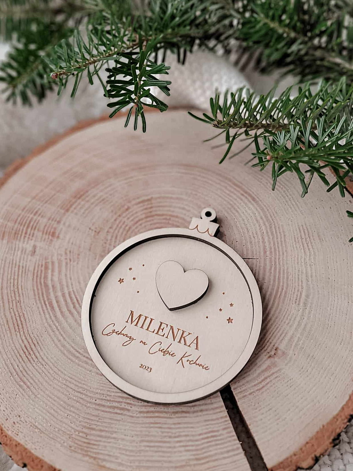 Wyjątkowa zawieszka na choinkę, wykonana z wysokiej jakości sklejki, w formie uroczej bombki.