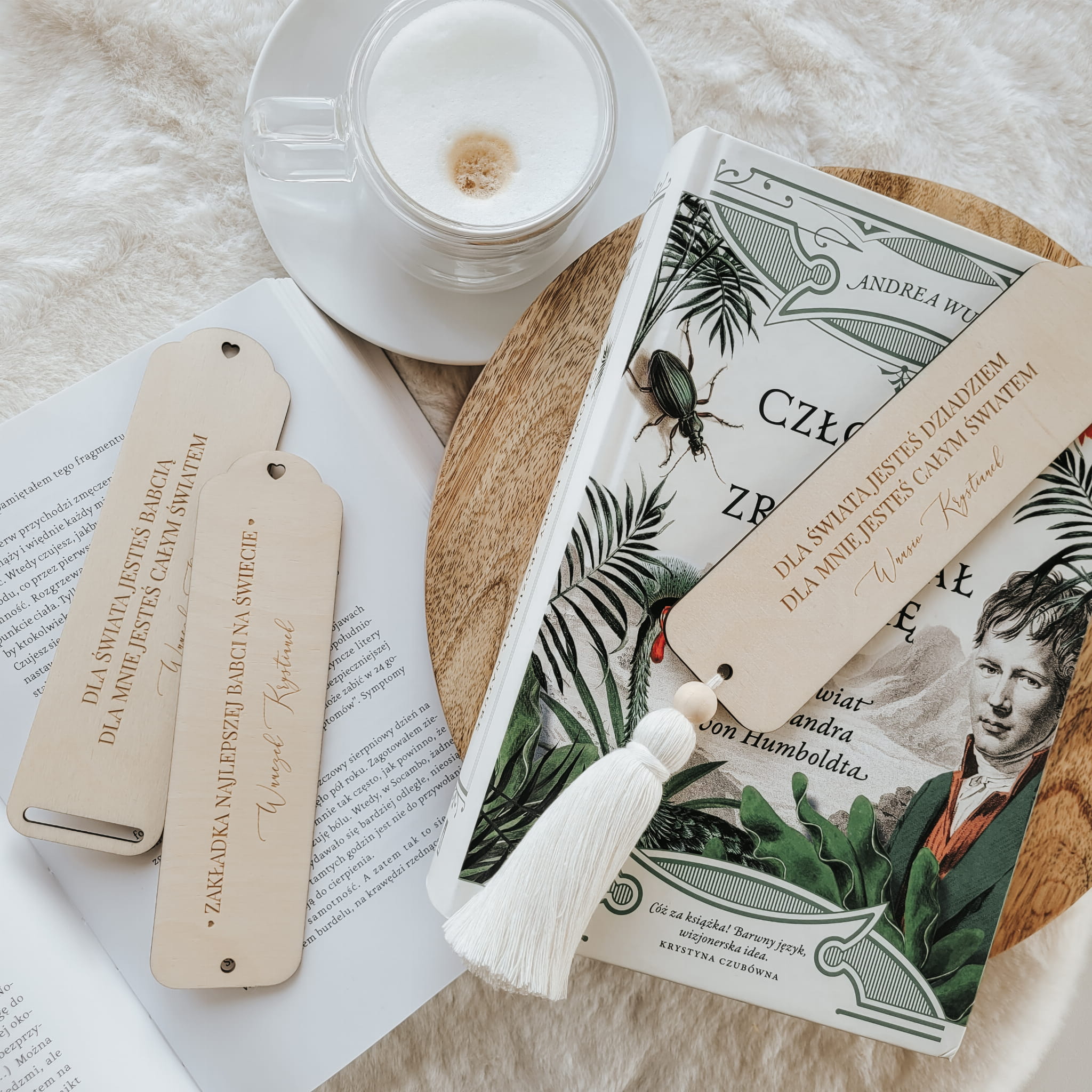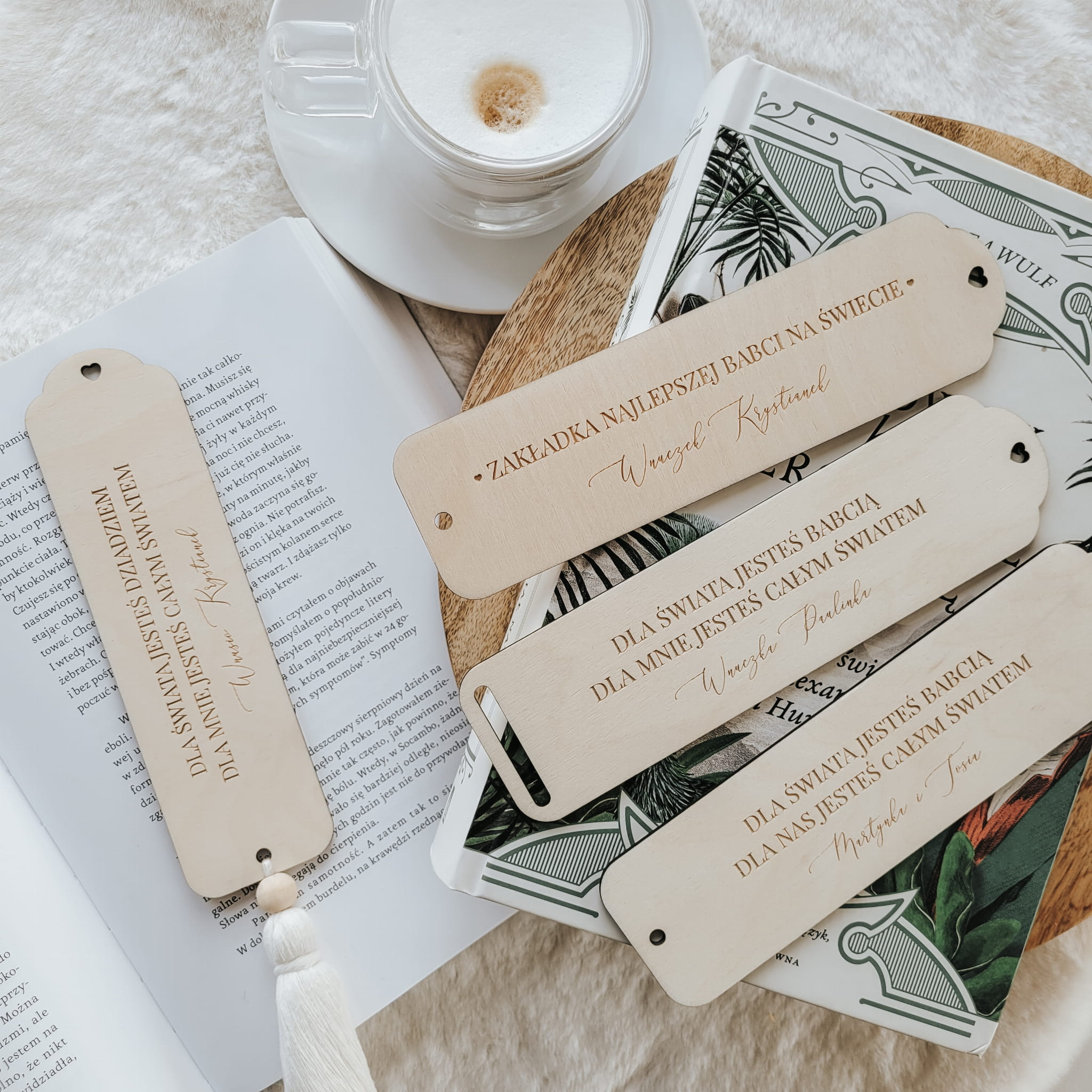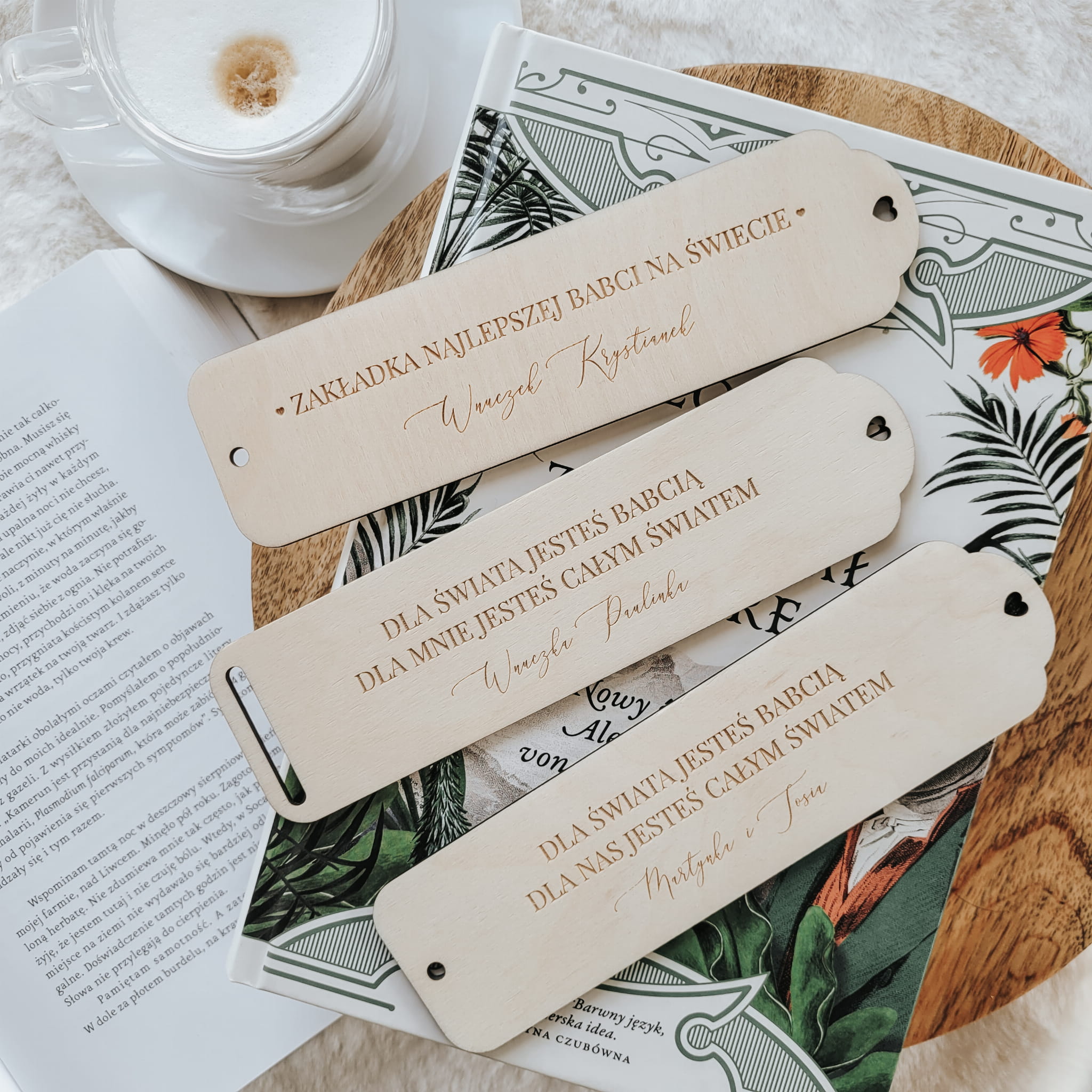 Drewniana zakładka do książki z grawerowaną dedykacją do ozdobienia makramą (wybierz wariant ze szczeliną) lub chwostem (wybierz wariant z dziurką).