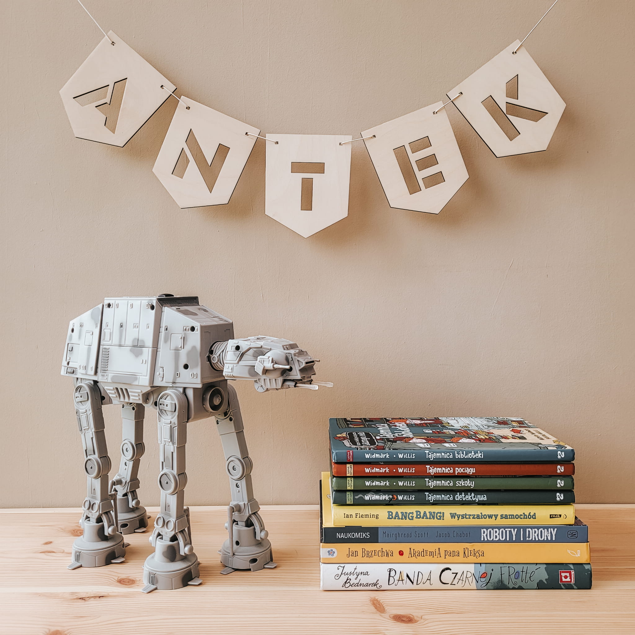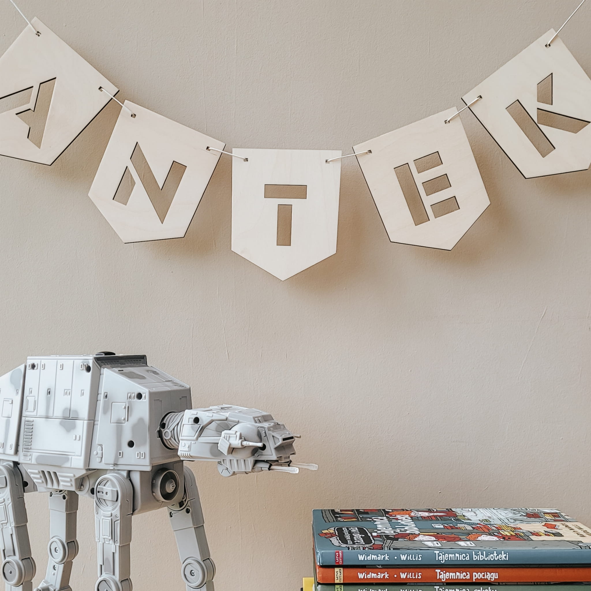 Skomponuj efektowną girlandę z drewnianych, ażurowych literek.