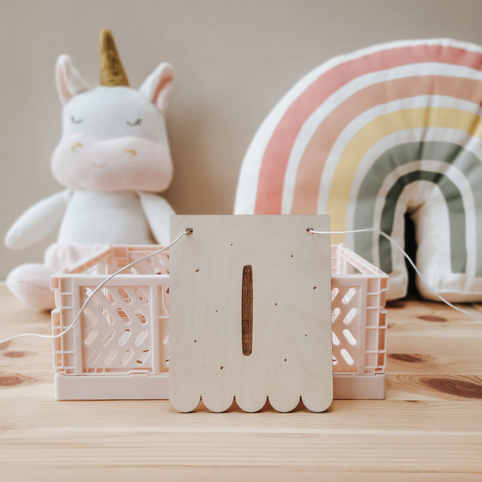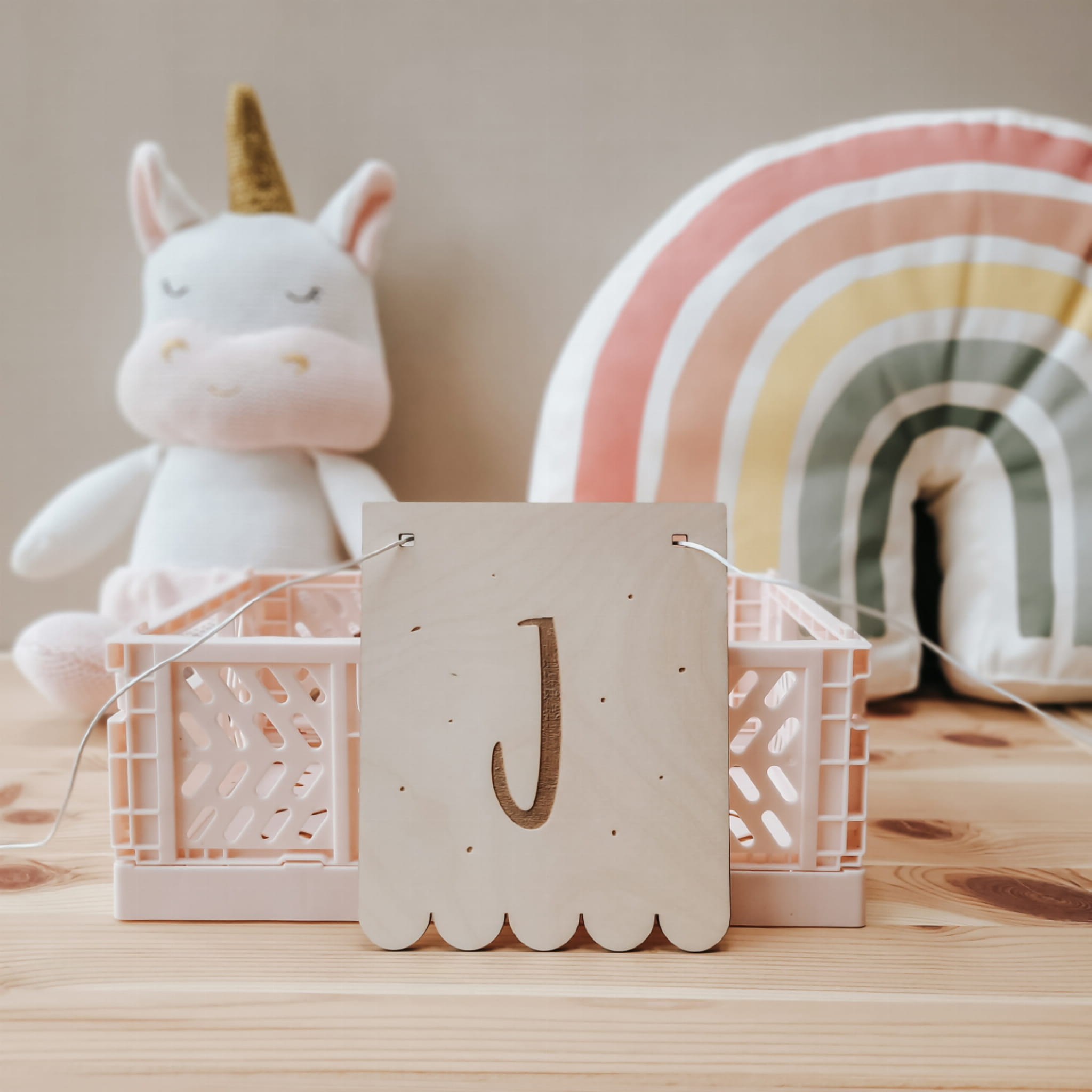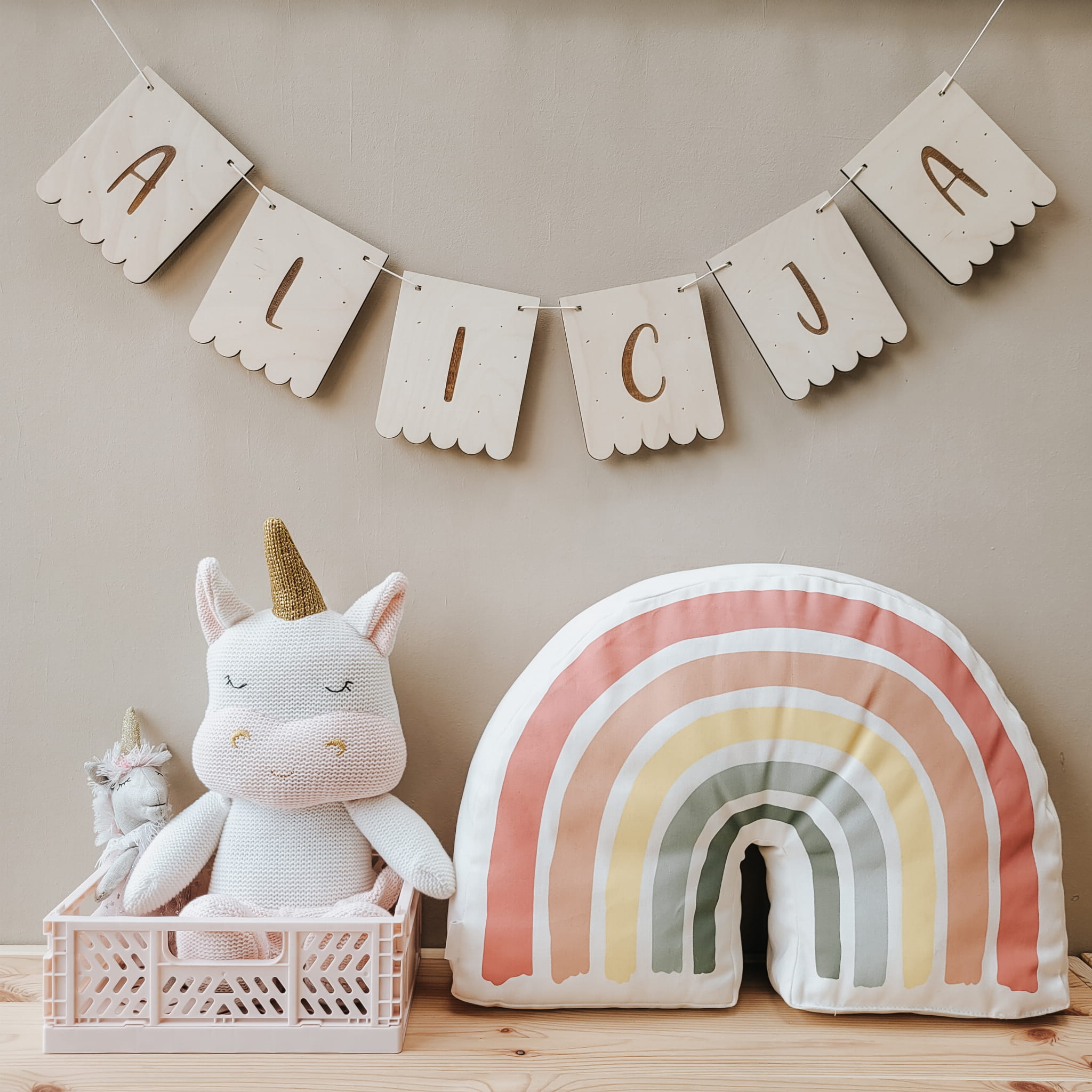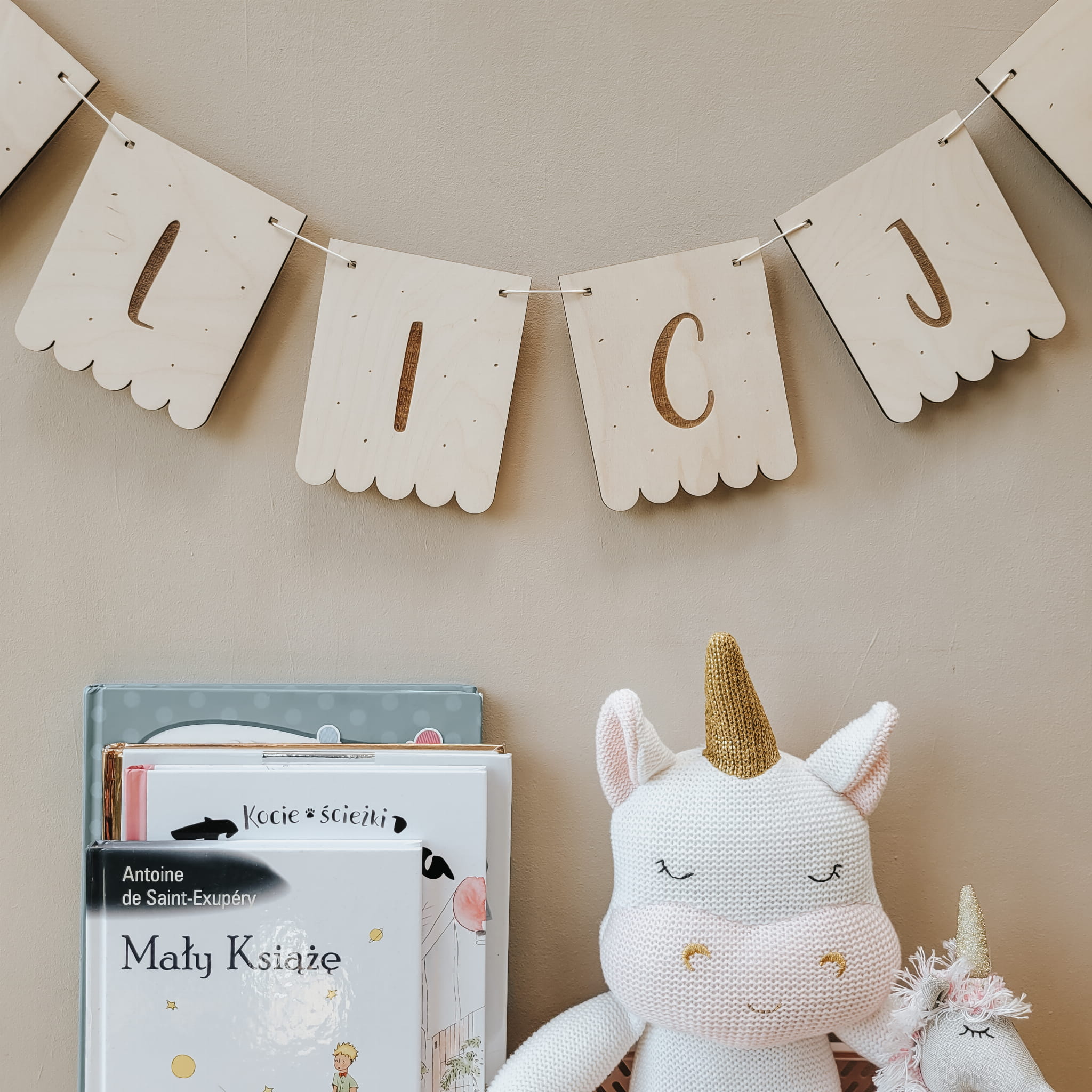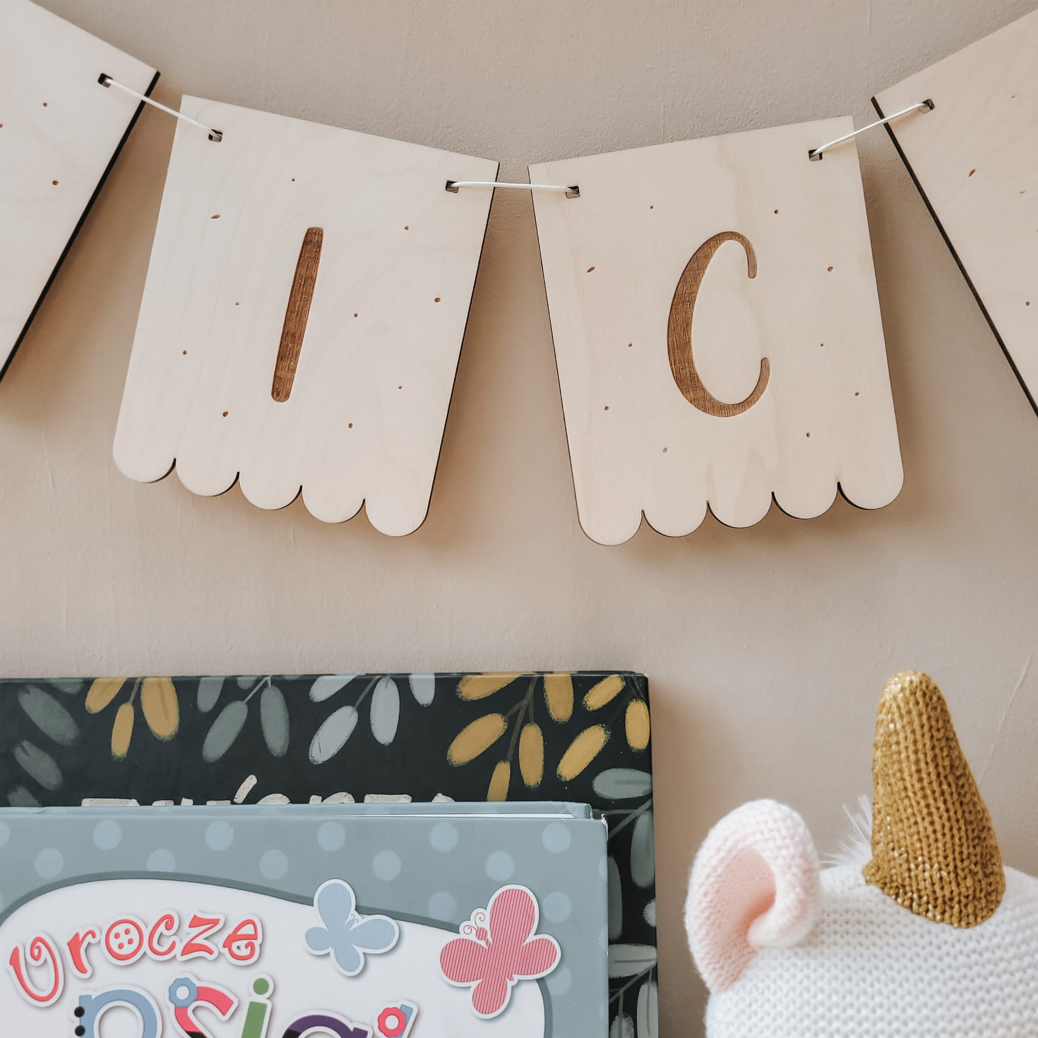 Skomponuj efektowną girlandę z drewnianych literek w kształcie falbanek.