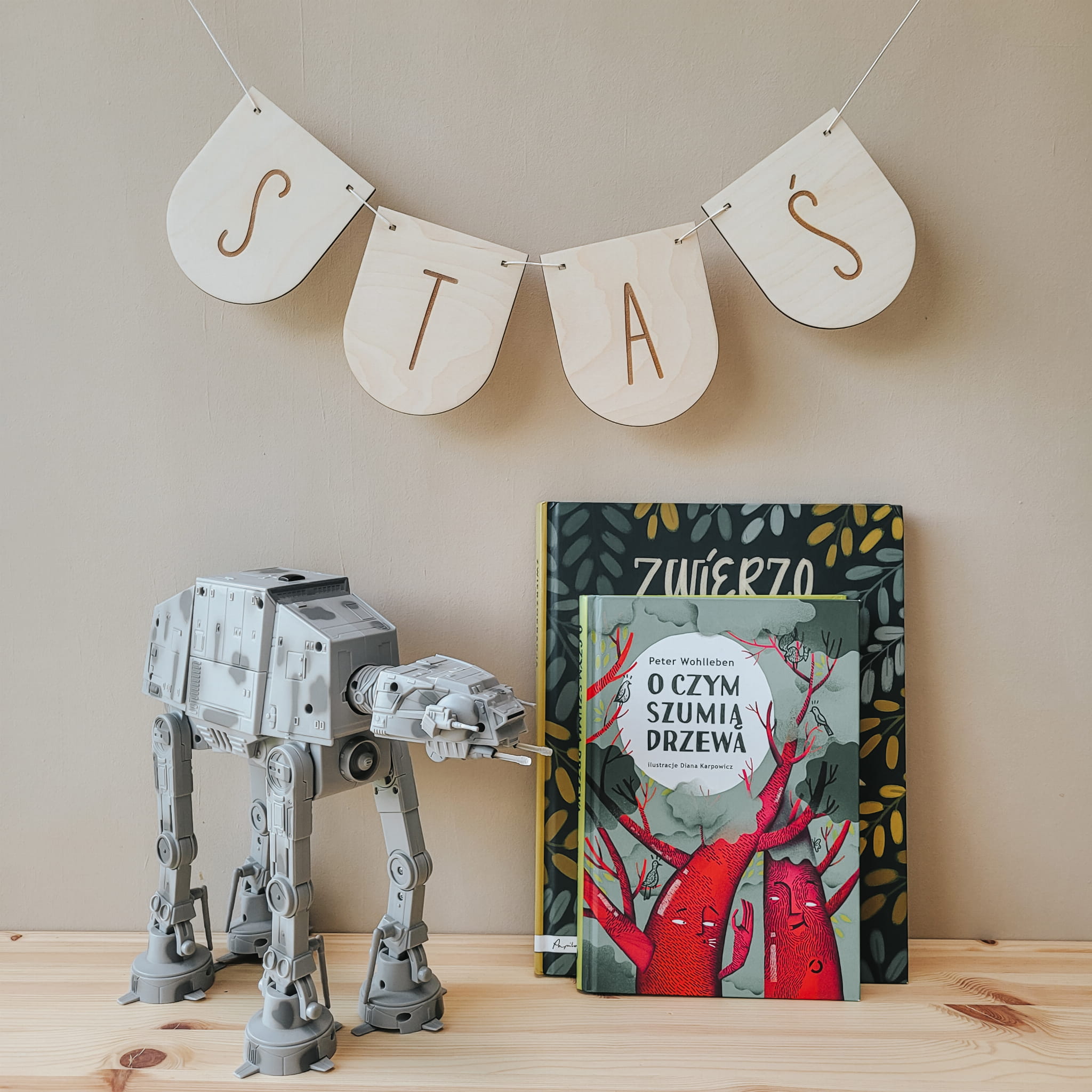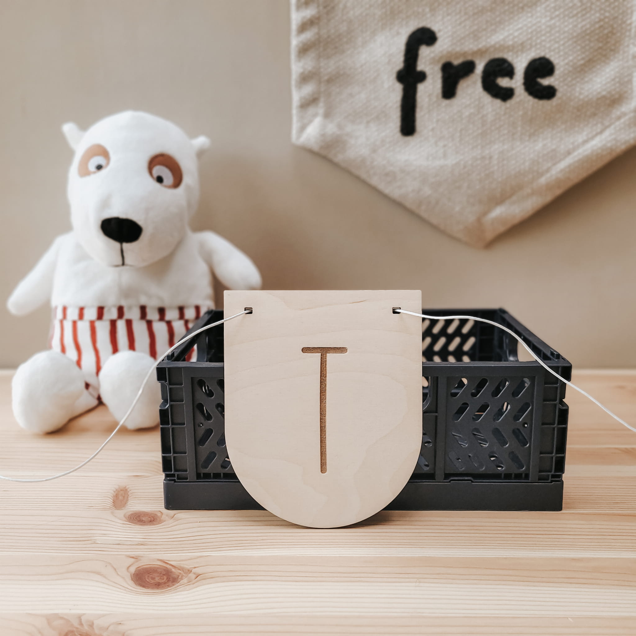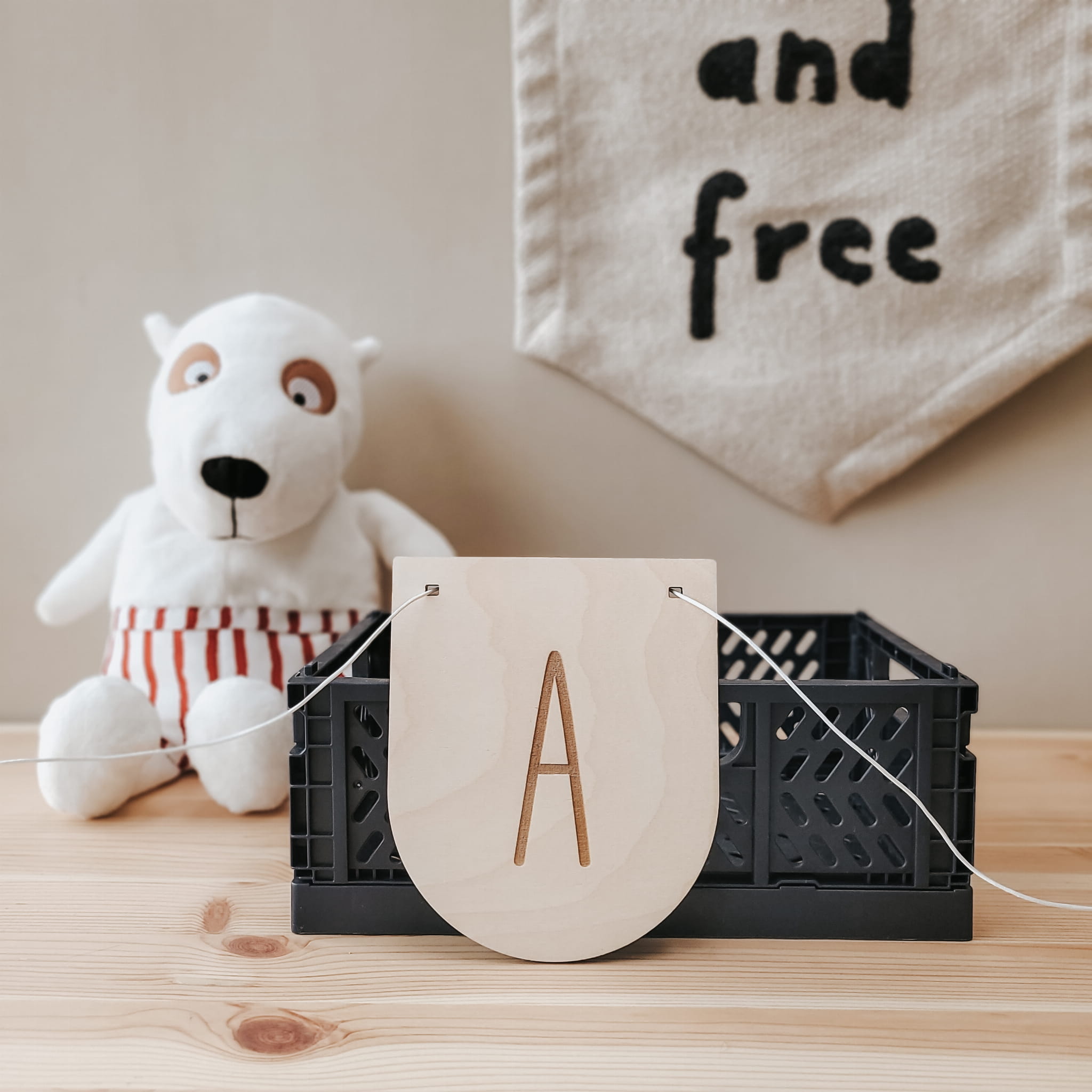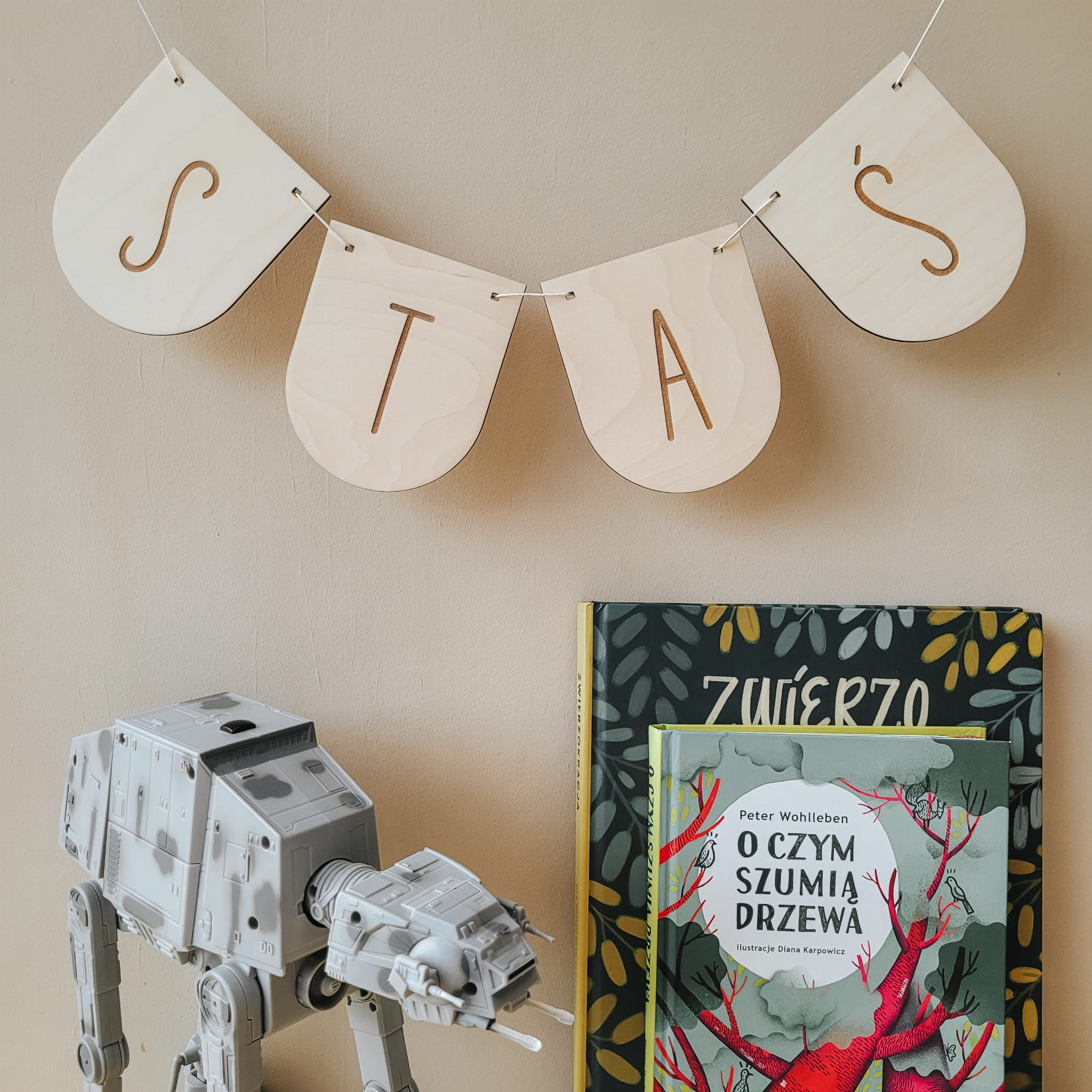 Skomponuj efektowną girlandę z drewnianych literek w kształcie płatków.