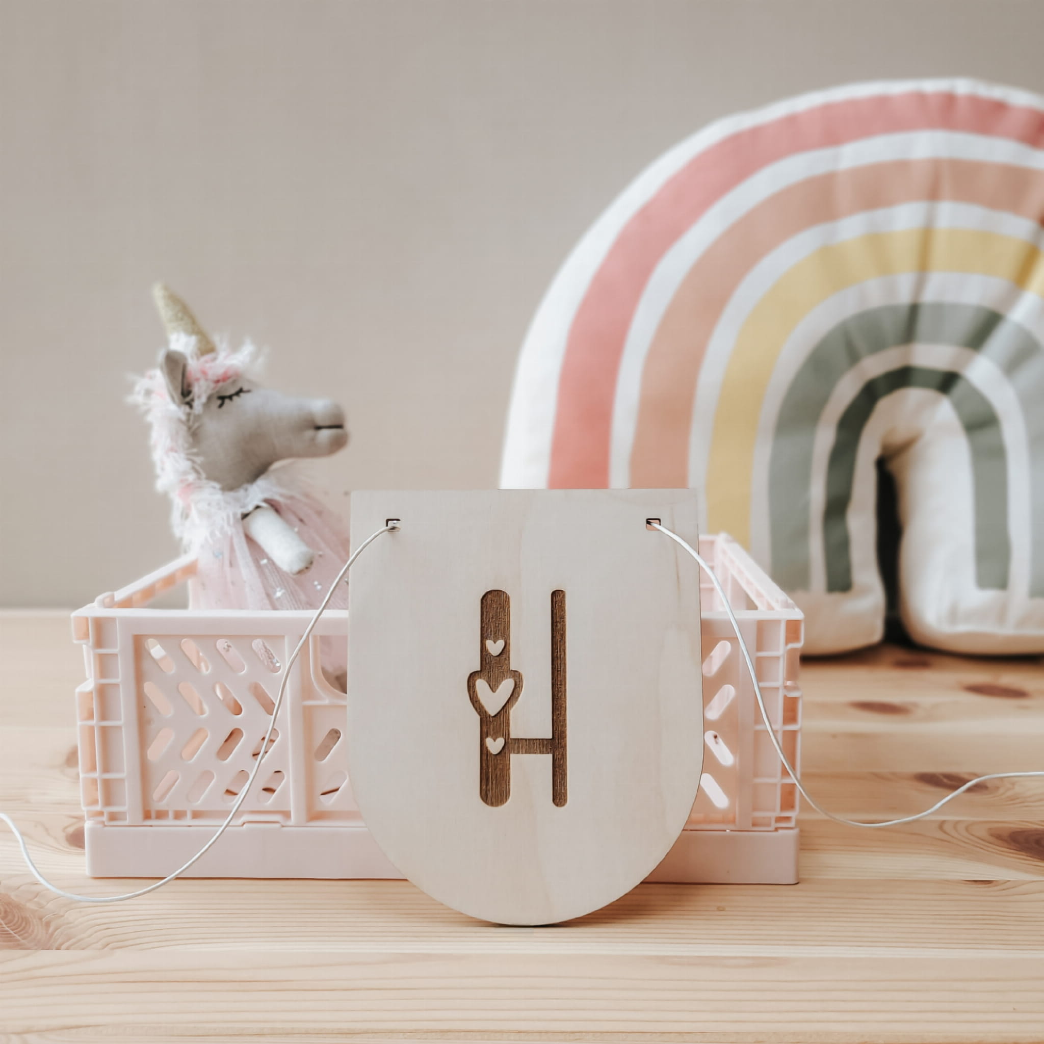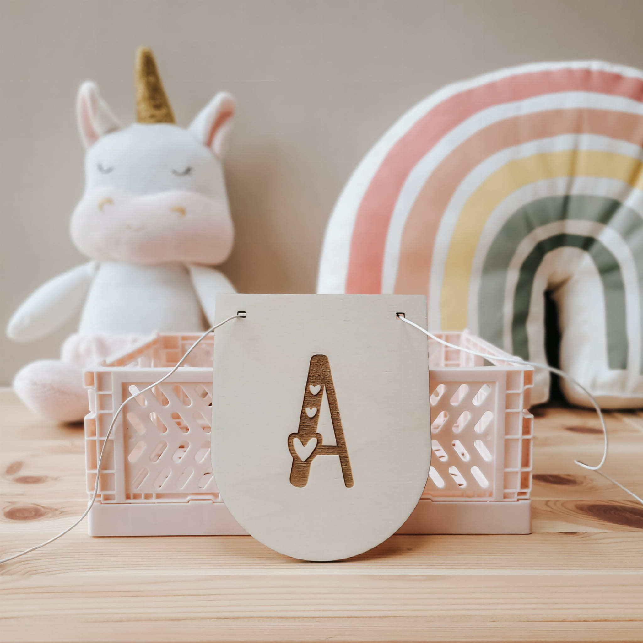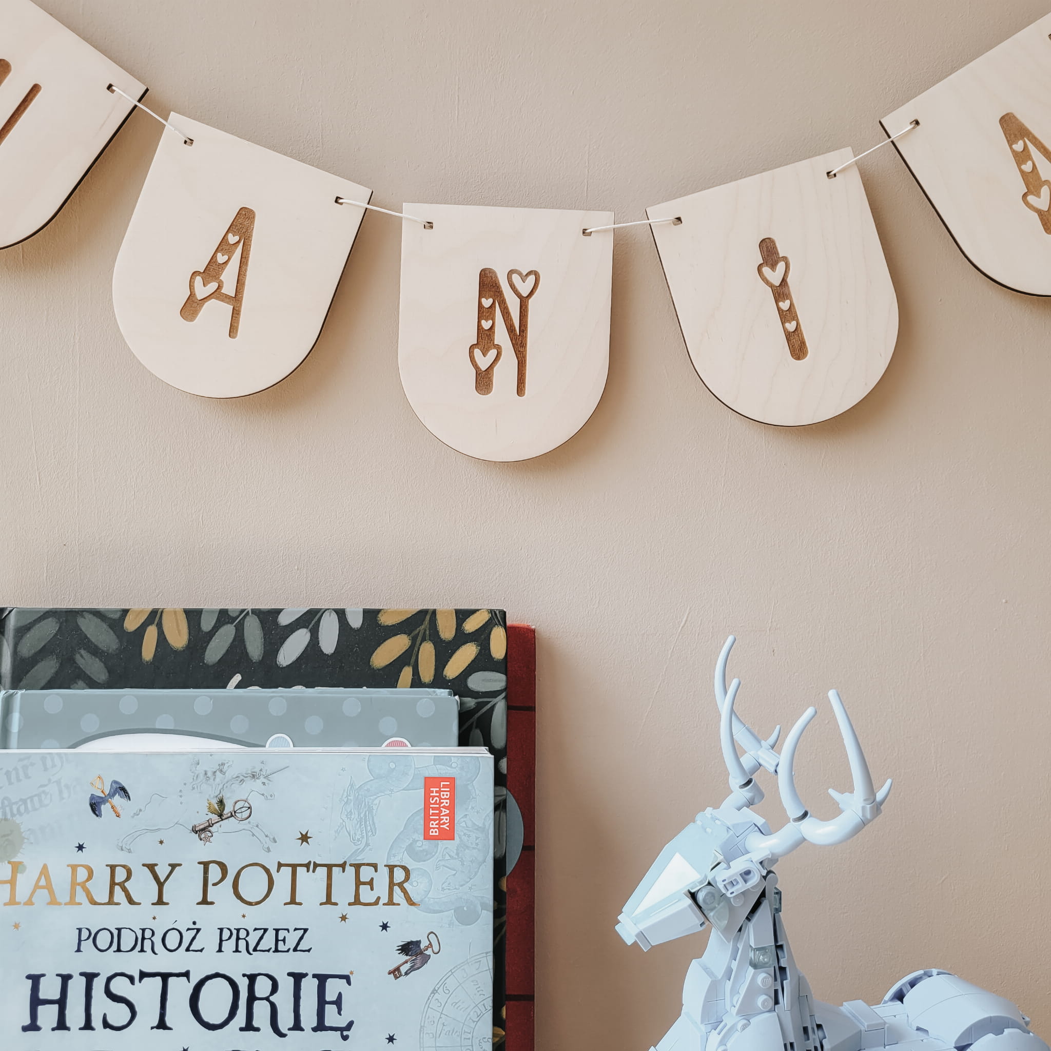 Skomponuj dziewczęcą girlandę z literek ze słodkimi serduszkami.