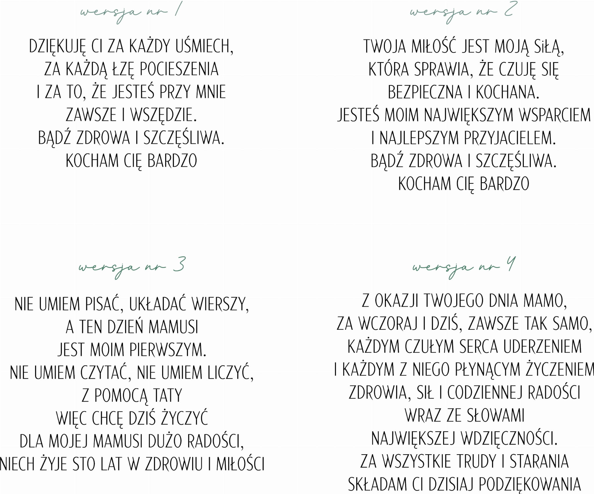 2. wybierz treść życzeń - możesz skorzystać z jednego z gotowych tekstów prezentowanych na zdjęciach np. wersja nr 1 lub przesłać własny **,
