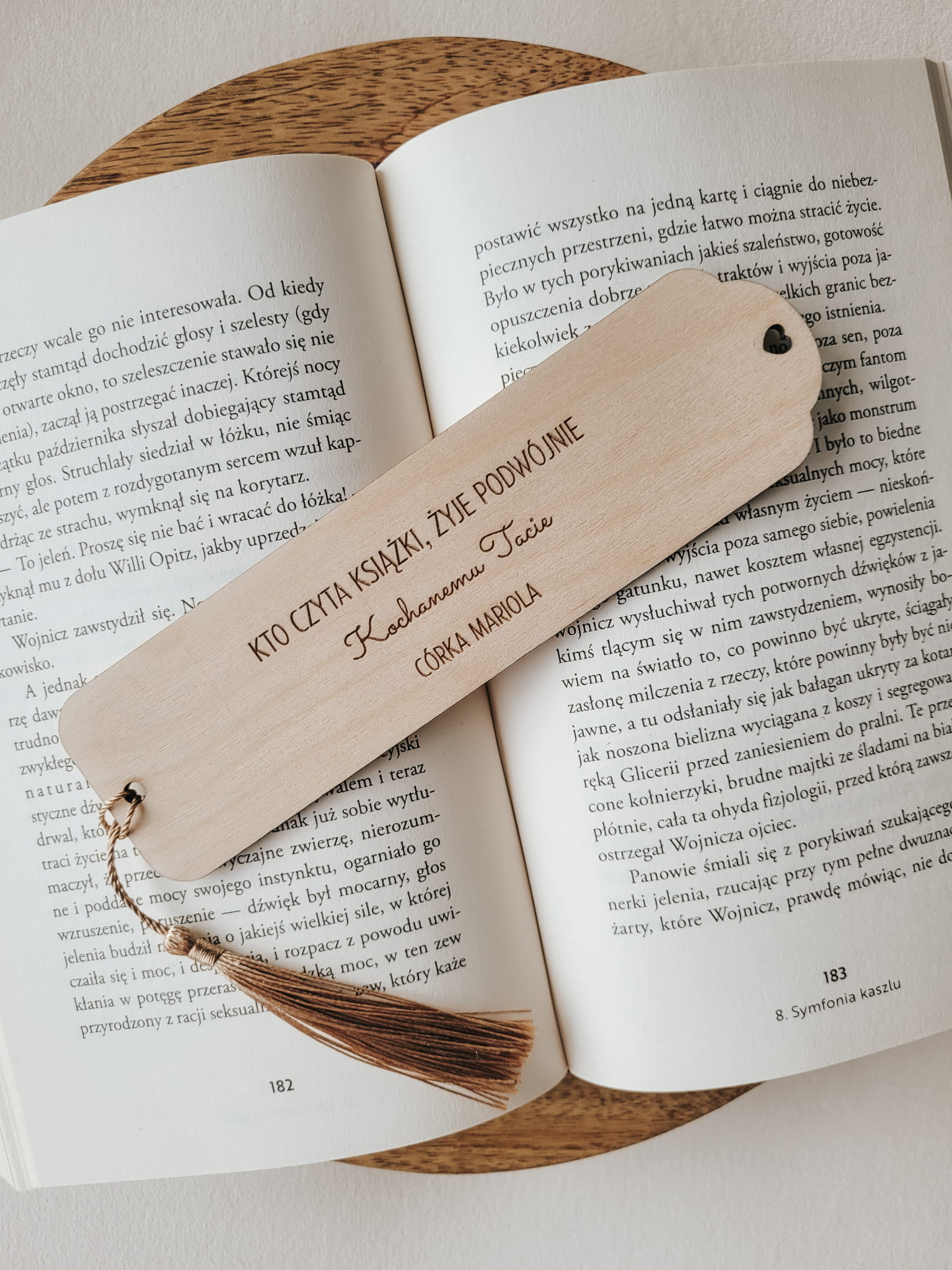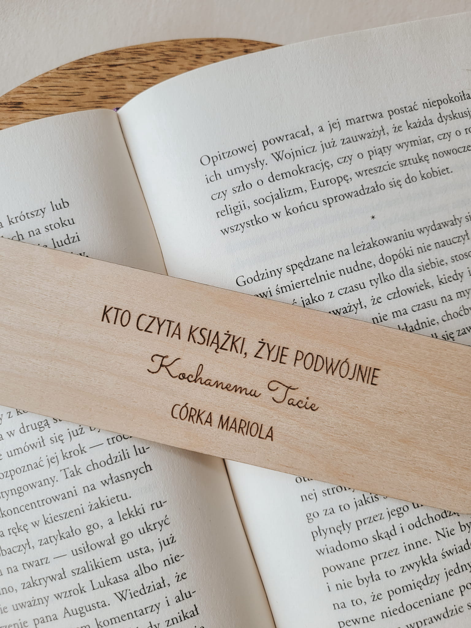 Drewniana zakładka do książki z grawerowaną dedykacją (maksymalnie trzy zdania)*