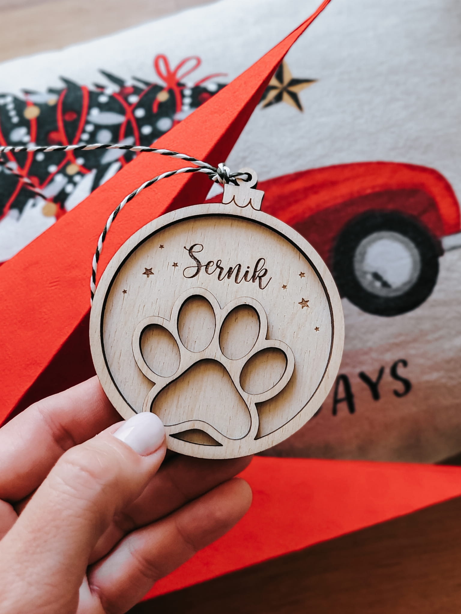 Alternatywa dla klasycznej bombki - do zawieszenia na choinkę, stroik lub jako etykieta na prezent.