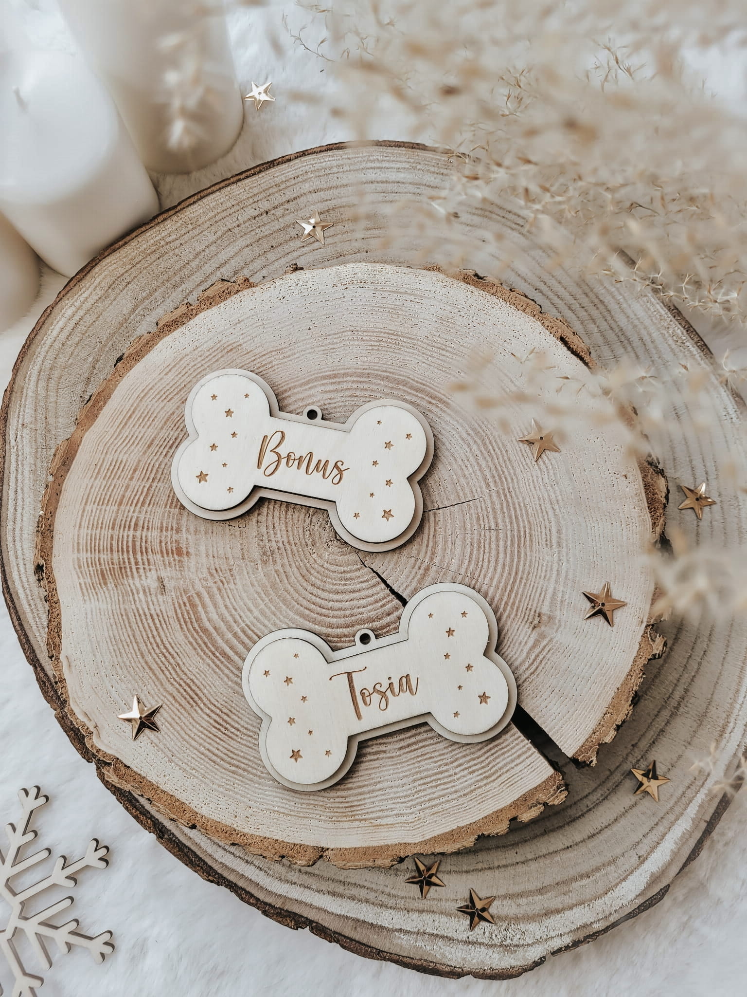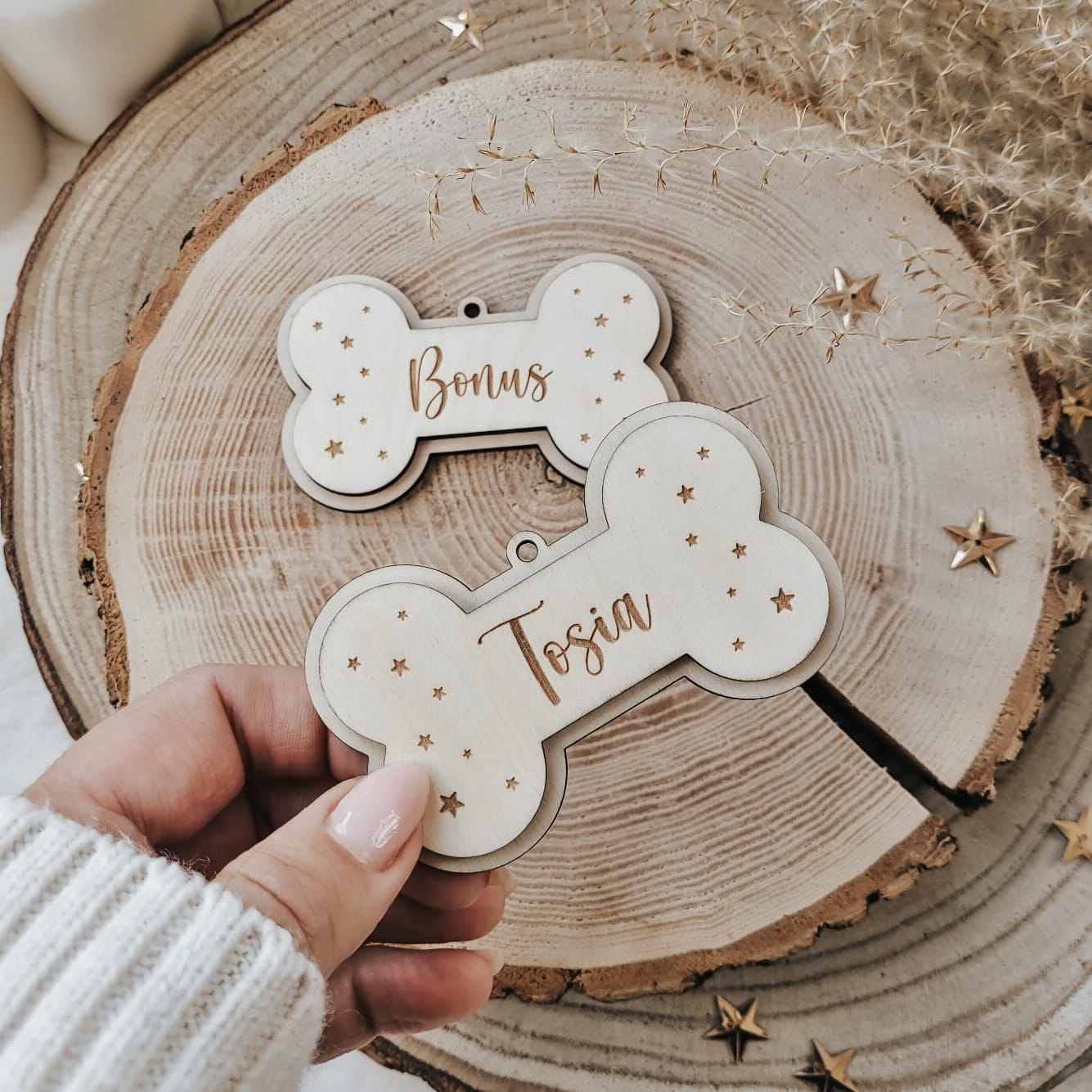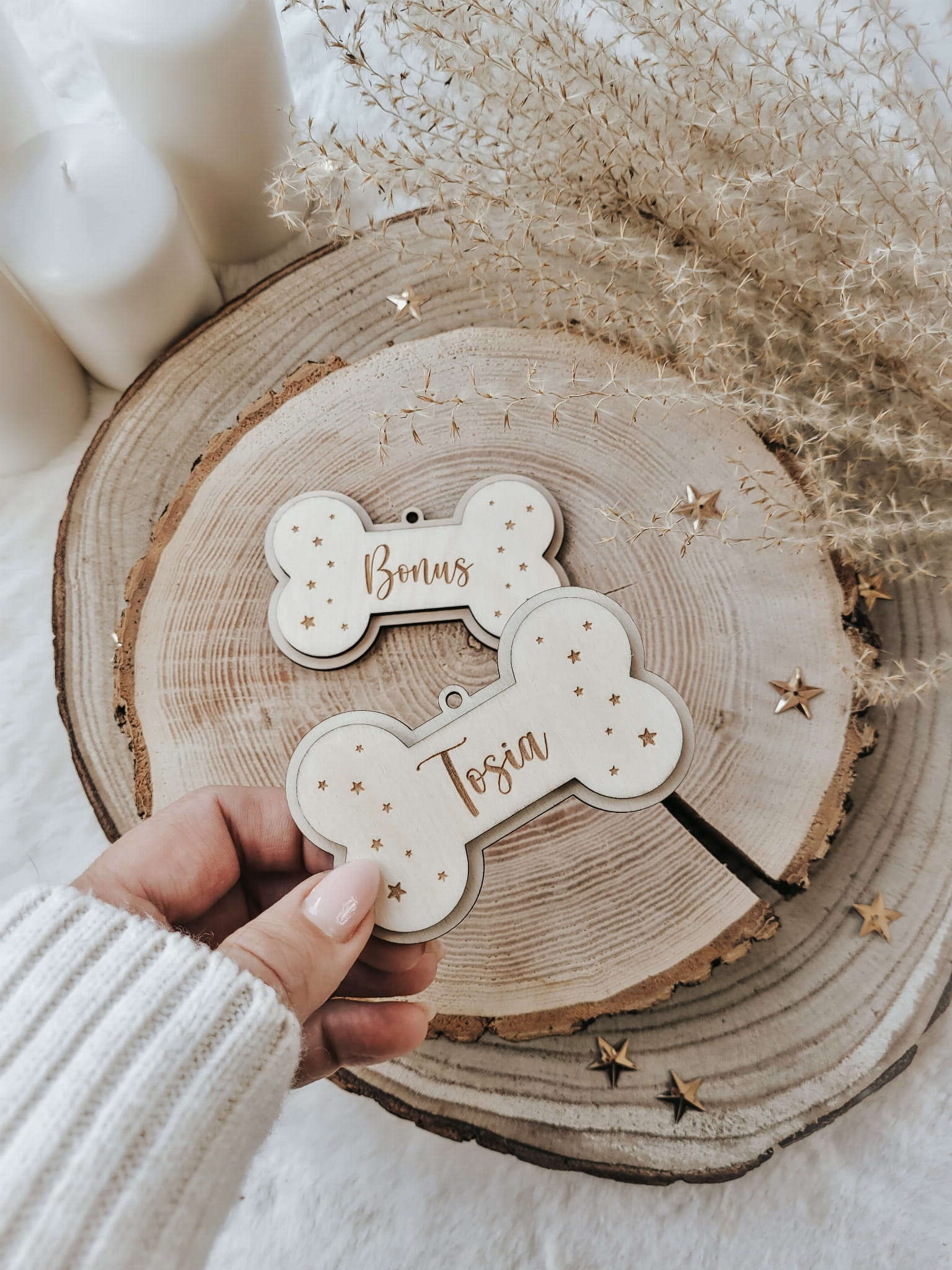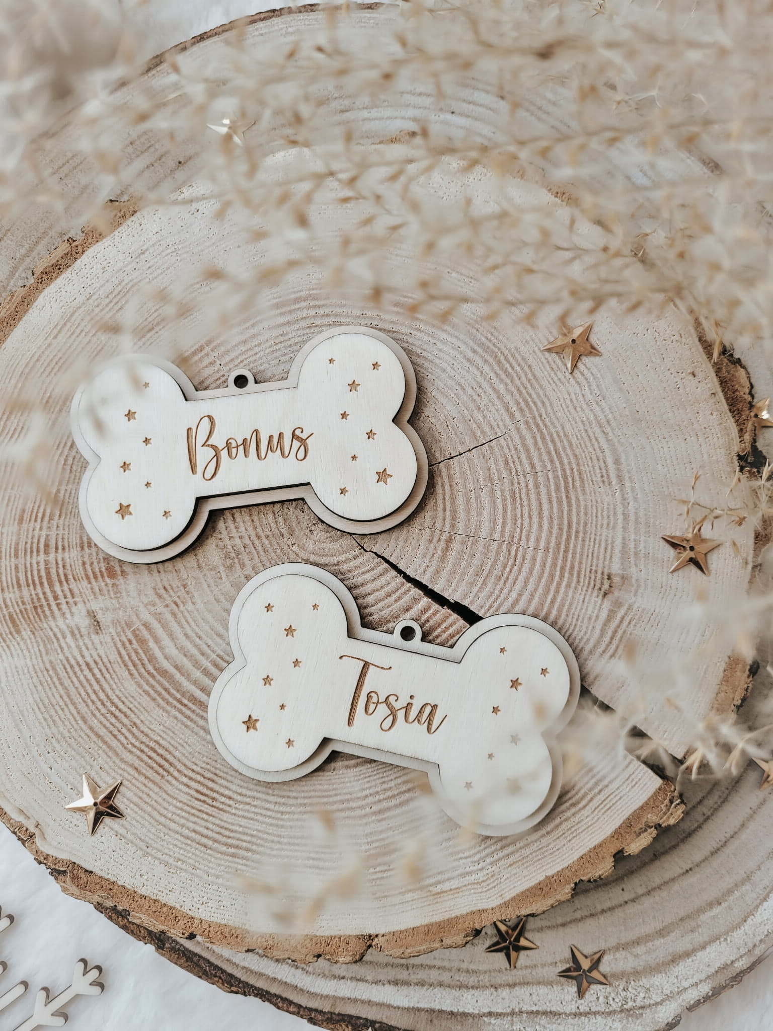 Urocza zawieszka z grawerowanym imieniem ukochanego pupila, w kształcie słodkiej kosteczki.